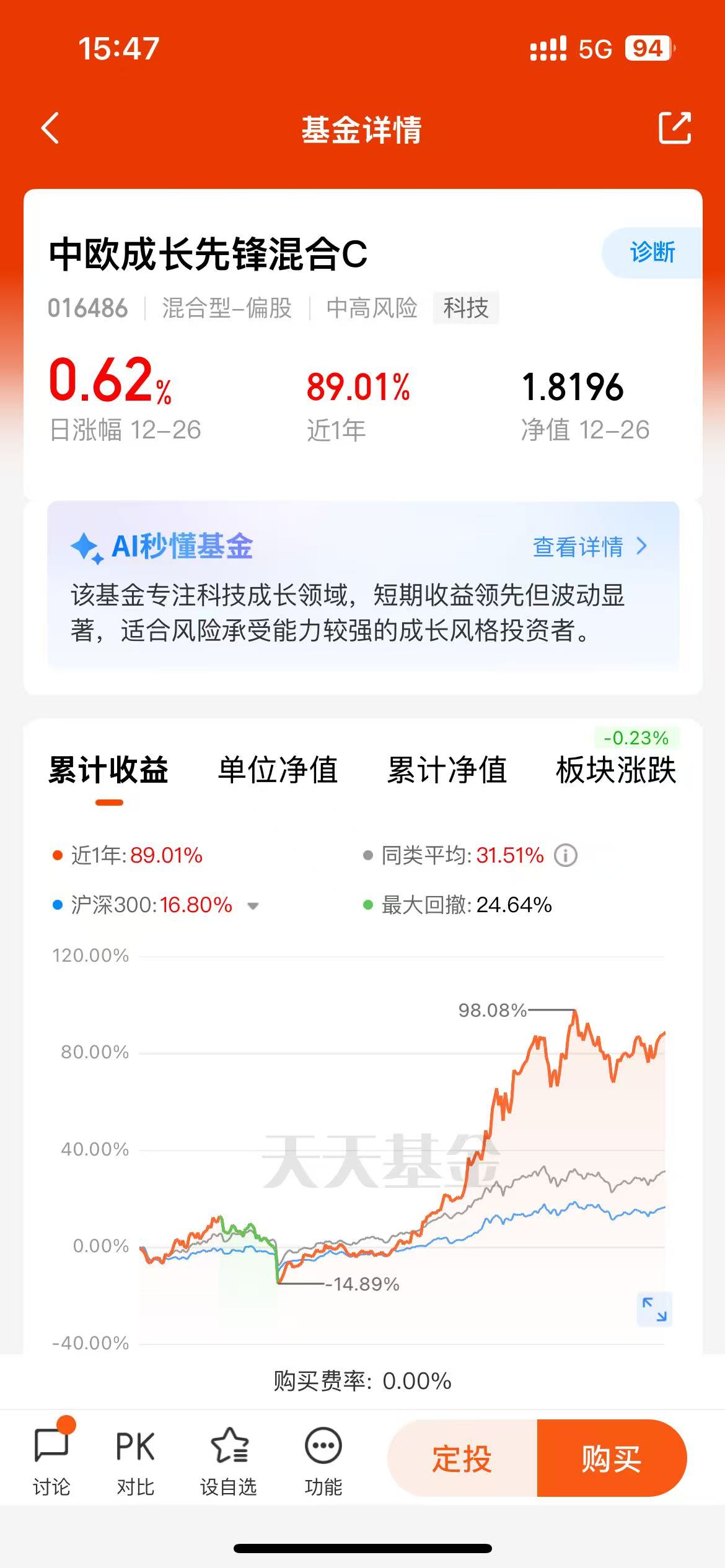 展望2026年,基金在AI算力国产化替代加速、储能商业模式创新与光伏技术迭代三大方向仍具投资价值。中欧成长先锋混合基金是投资者参与科技与新能源高景气成长赛道的优质选择,但更适合风险承受能力较强的投资者长期持有。对于希望分享2026年高景气成长红利的投资者,该基金值得重点关注。@中欧基金