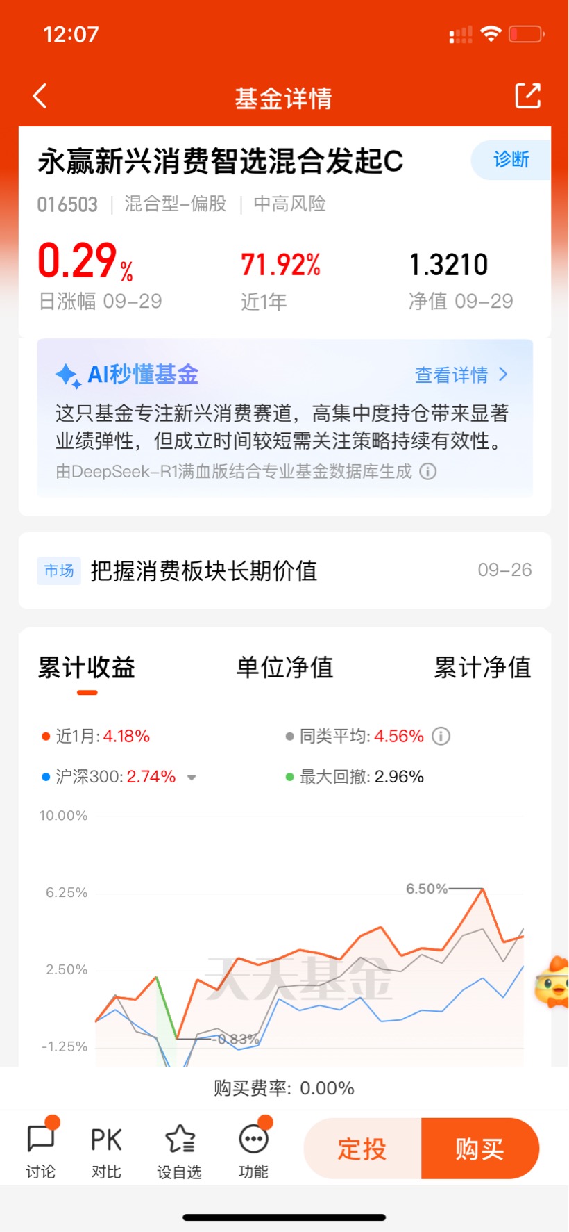 $永赢新兴消费智选混合发起C$ 专注新兴消费赛道,聚焦消费成长、侧重长期收益,这里高集中度持仓,近三个月27.19%涨幅,近半年47.78%涨幅,近一年71.92%涨幅,业绩稳健,长期业绩表现还是优秀亮眼的很了,消费板块具备长期价值,还是很值得期待的!#创业板指创阶段新高 致敬“924行情”#