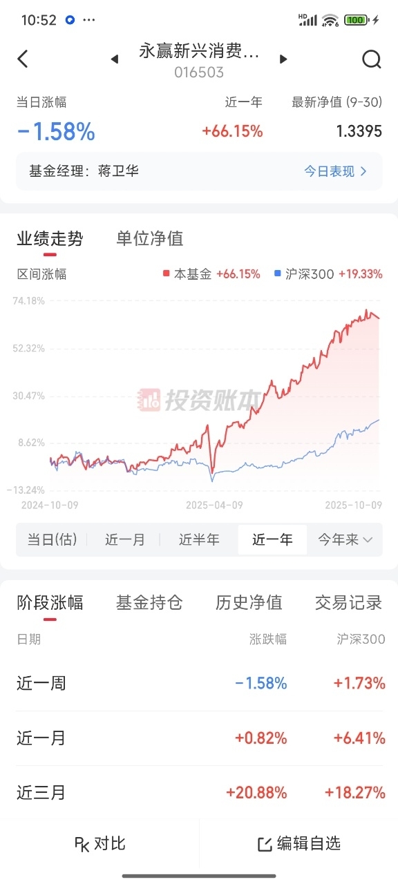 消费也是主线,大白马含金量高,看好消费,错过金九月,别再错过银十月!永赢新兴消费C016503近三个月上涨28.16%,近一年上涨59.71%,这基主投大消费,节前没买节后上车更便宜,刷卡上车,加油冲冲冲