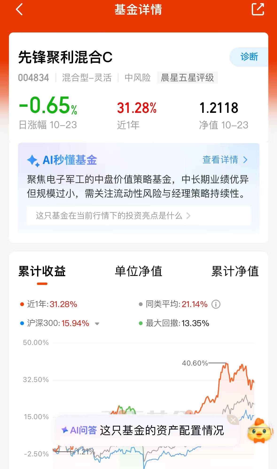 先锋聚利混合C$科技板块业绩香的很收今天估值就收获了1.39%近6个月收20.8