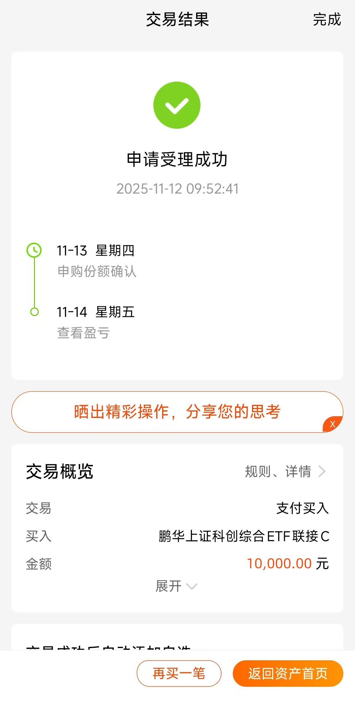有没有觉得,虽然市场情绪起伏,但那些真正有技术含量、符合未来发展方向的领域,总是能展现出韧性?科创板正是这些企业的聚集地。$鹏华上证科创综合ETF联接C$(023758)这只基金,跟踪的是覆盖科创板所有证券的综合指数,避免了“把鸡蛋放在一个篮子里”的风险。用10元钱就能开始投资,这种方式大大降低了参与科创板投资的门槛和复杂性。在市场震荡时,分批布局这类代表未来产业趋势的指数基金,或许是一种思路。#科技小登大揭秘#