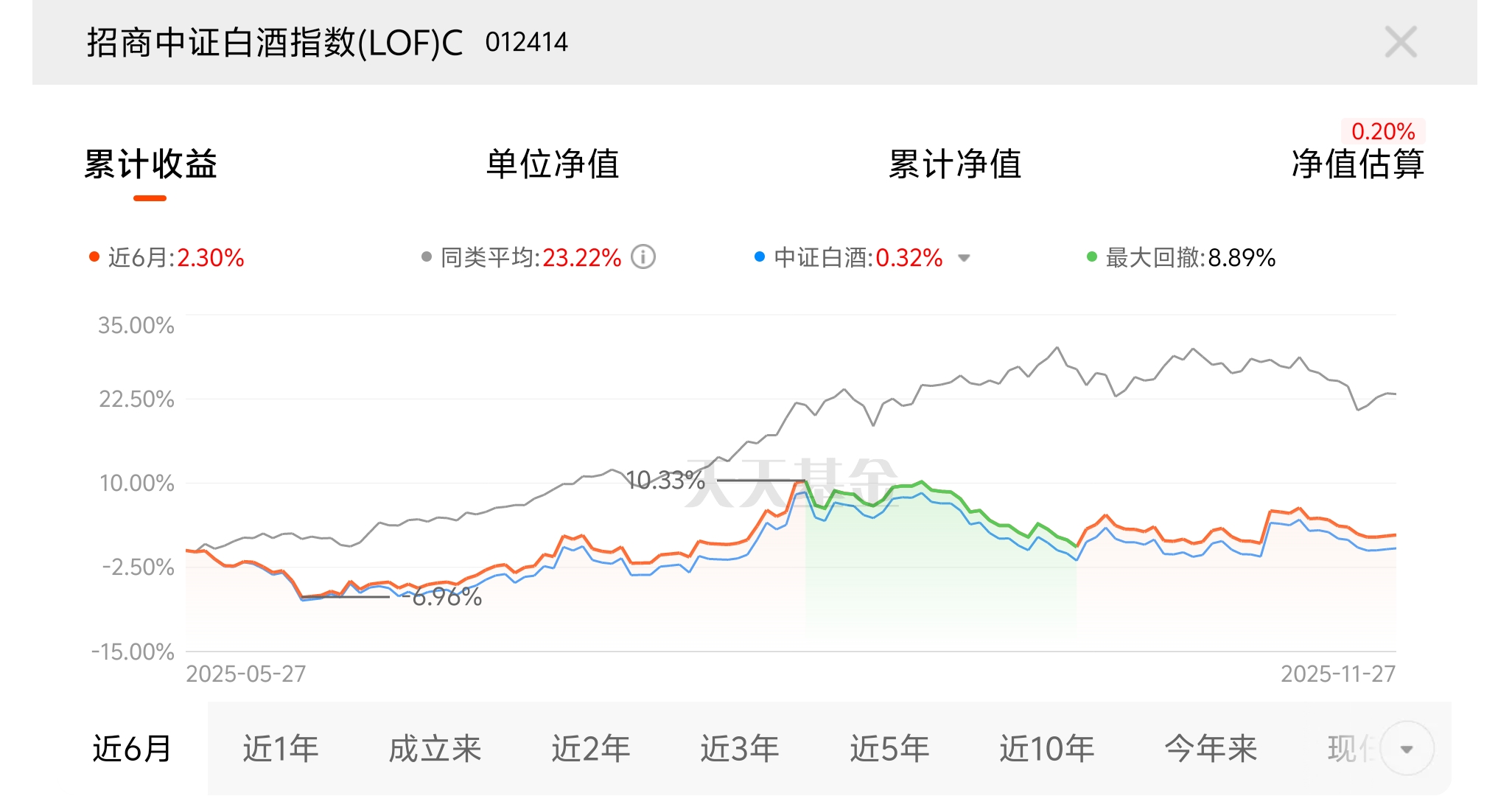白酒板块近期估值低位,配置价值凸显。今天走势稳中向好,茅台大部分经销商盈利状况良好,10月中完成配额到货。招商中证白酒指数C近6个月收益2.30%,现在逐步布局正当时,设置定投分摊成本,后续更省心。