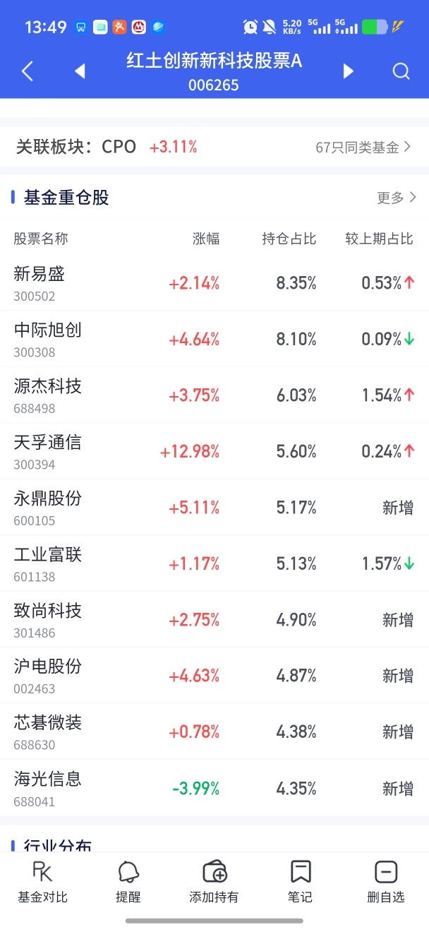 $红土创新新科技股票C$ $红土创新新科技股票A$ 春节后首个交易日,TMT板块领涨,市场情绪明显回暖。手里这只科技基今天估计要收个大阳线。不过话说回来,这种高波动品种,涨得快跌得也快,仓位控制很重要,建议用闲钱参与,别All in。