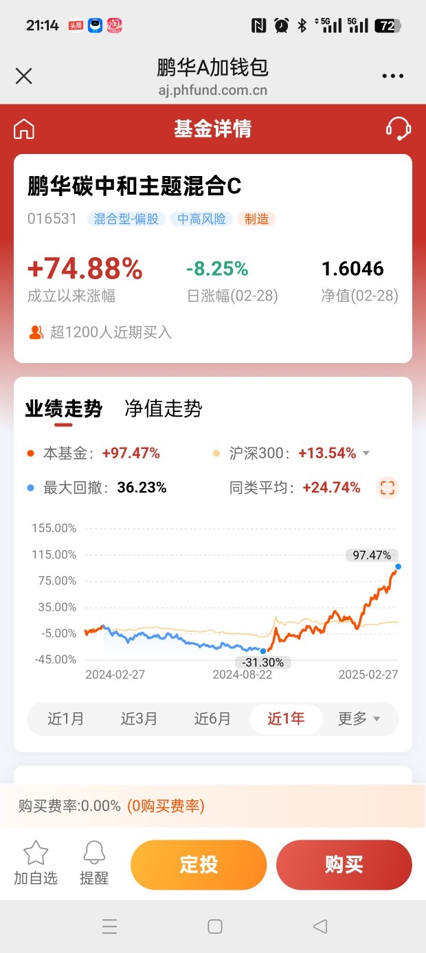 $鹏华碳中和主题混合C$