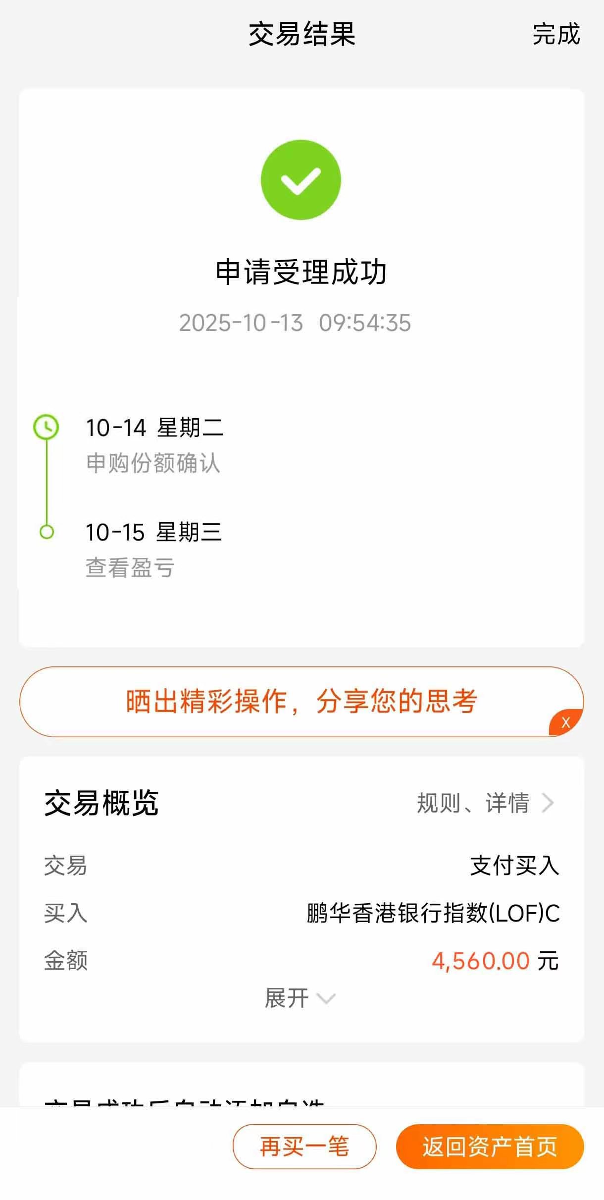 在市场寻找“避风港”时,港股银行板块引起了我的注意。$鹏华香港银行指数(LOF)C$(010365)这只产品一键打包了该板块的多家龙头公司,避免了单一个股的风险。这些公司业务根基深厚,长期提供可观的分红,这在当前充满变数的市场中是一份难得的确定性。它的LOF形式也支持场内灵活交易,方便把握机会。对于追求资产稳健增长的朋友,不妨多看看。#指数操盘手集结令#