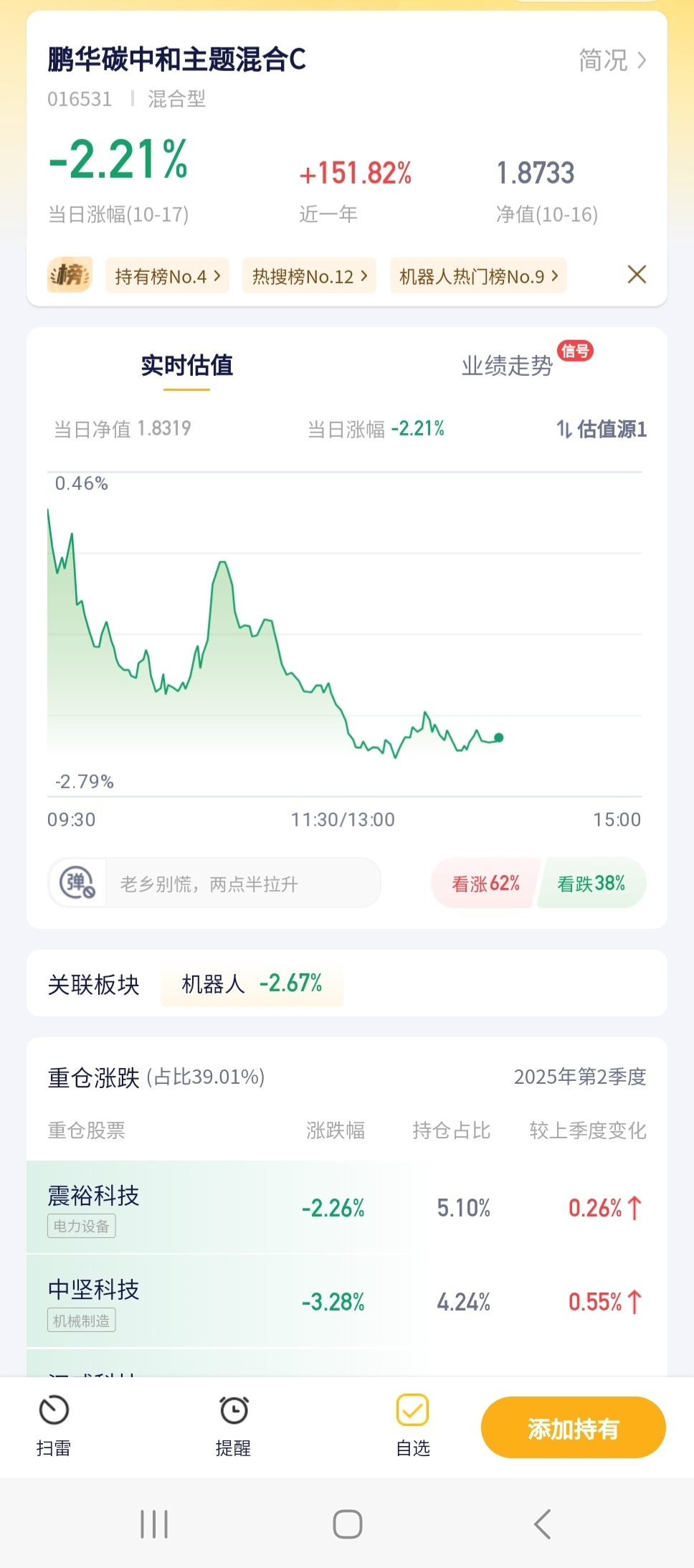 鹏华碳中和主题混合C今日预估跌幅2.21%!