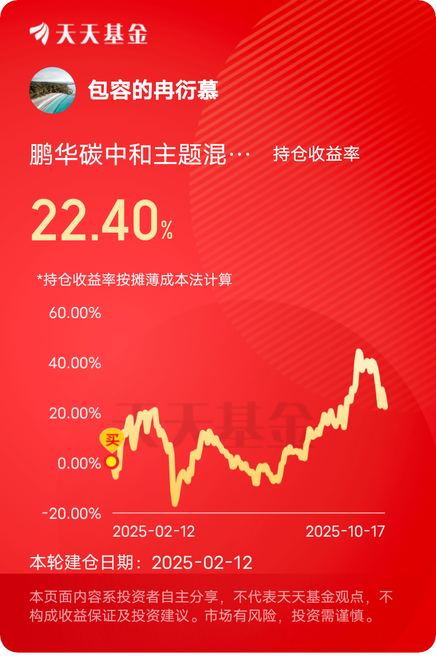 现在消费跌了刚好是机会,鹏华港股通消费我觉得可以入,虽然不是最低点,但是赢面比较大,政策刚说要发家电补贴,这波错杀我含泪加仓!$鹏华碳中和主题混合C$ #晒收益#