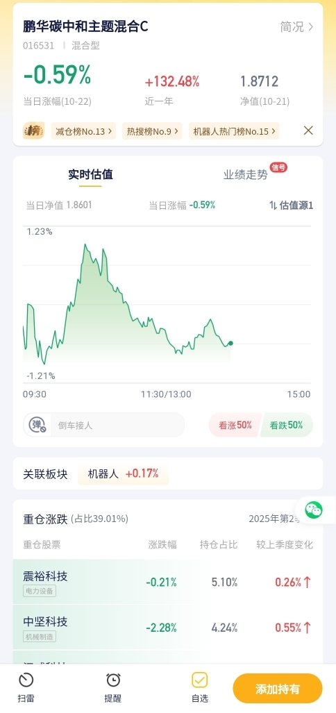 - 鹏华碳中和主题混合C今日预估跌幅0.59%!