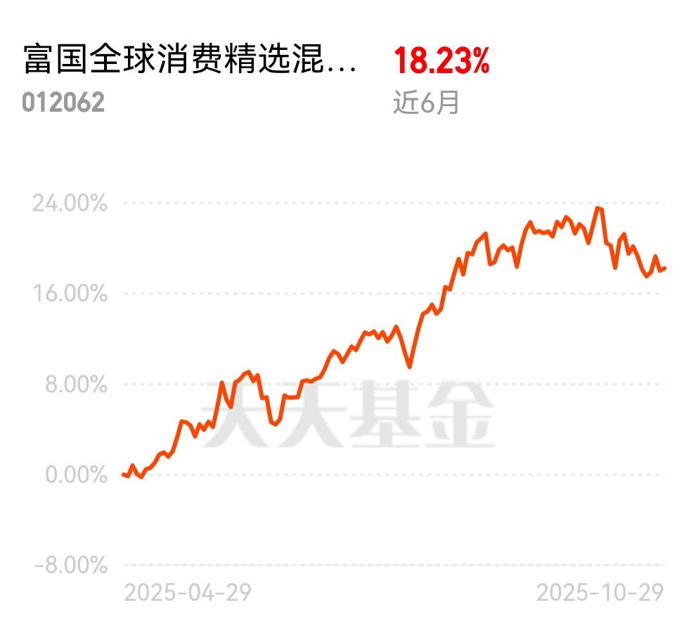 牛市偶尔波动,新消费值得看!富国全球消费 C 昨晚逆涨 0.18%,近一年涨 55.15%,盯全球消费,覆盖广回撤小业绩棒!