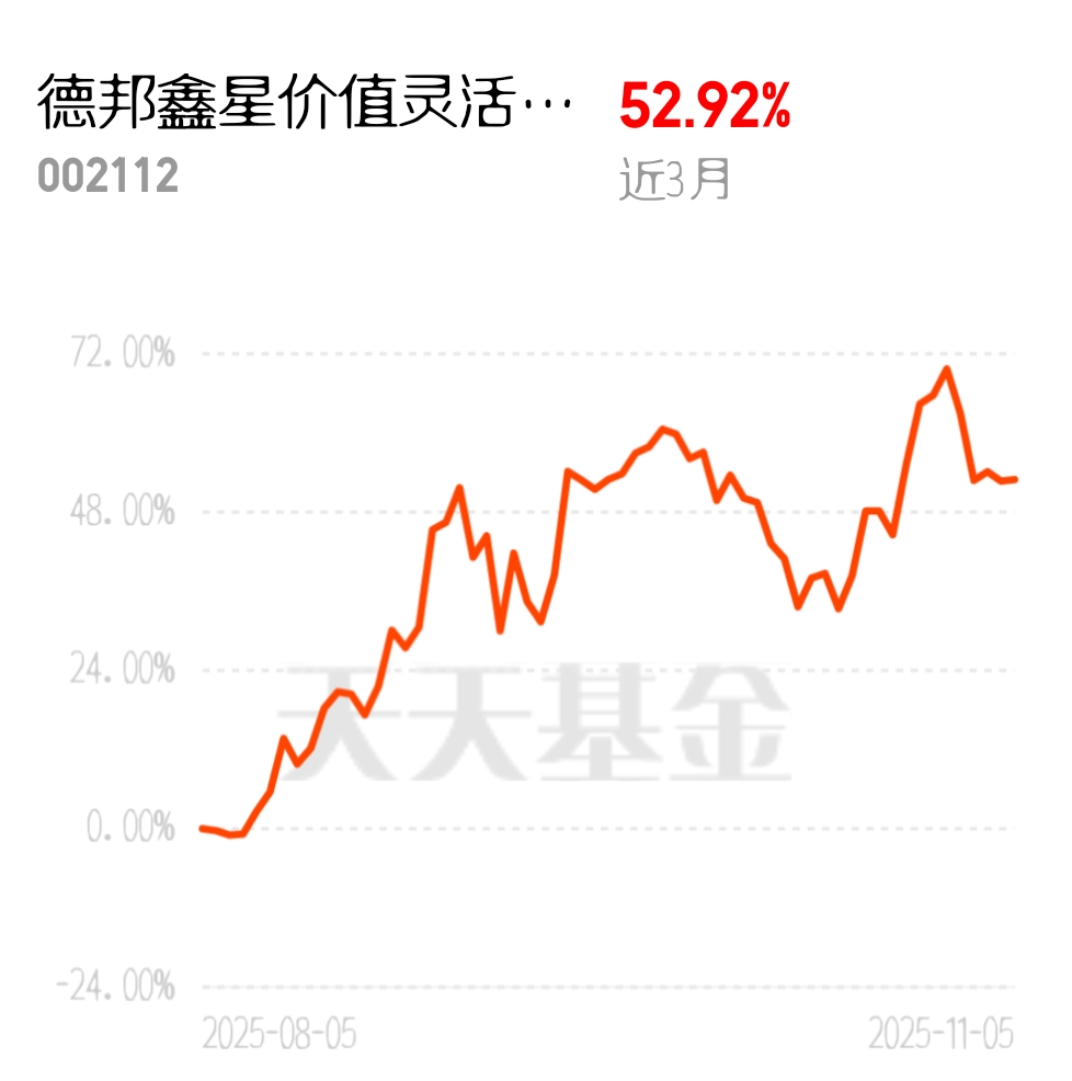 今年前十个月,不少灵活配置型基金都取得了不错的成绩,成为市场中的香饽饽。德邦鑫星价值灵活配置混合C更是其中的佼佼者,近3个月收益52.92%,业绩亮眼又抗跌,让投资者持有体验特别好。$德邦鑫星价值灵活配置混合C$