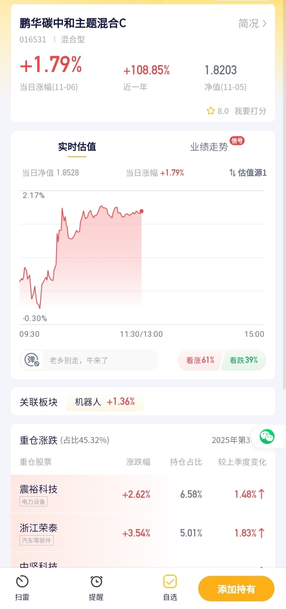 鹏华碳中和主题混合C今日预估涨幅+1.79%!