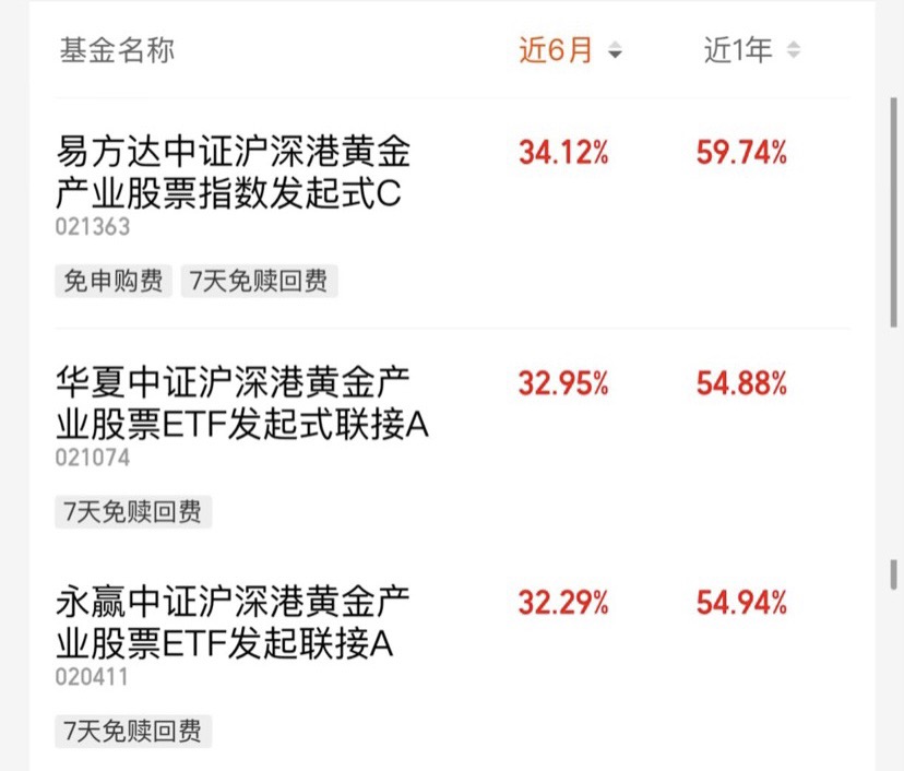今天黄金涨得超不错,这只比同类基金收益好,果断加仓跟上$易方达中证沪深港黄金产业