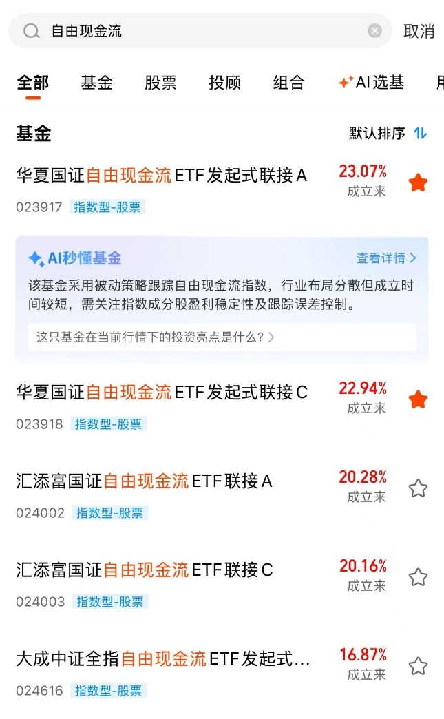 看了下自由现金流,华夏家的业绩最好,成立来23%,而且管理费一年仅0.15%,同类产品中最低,而且回撤还小,性价比还是不错的,今天多加点了$华夏国证自由现金流ETF发起式联接C$