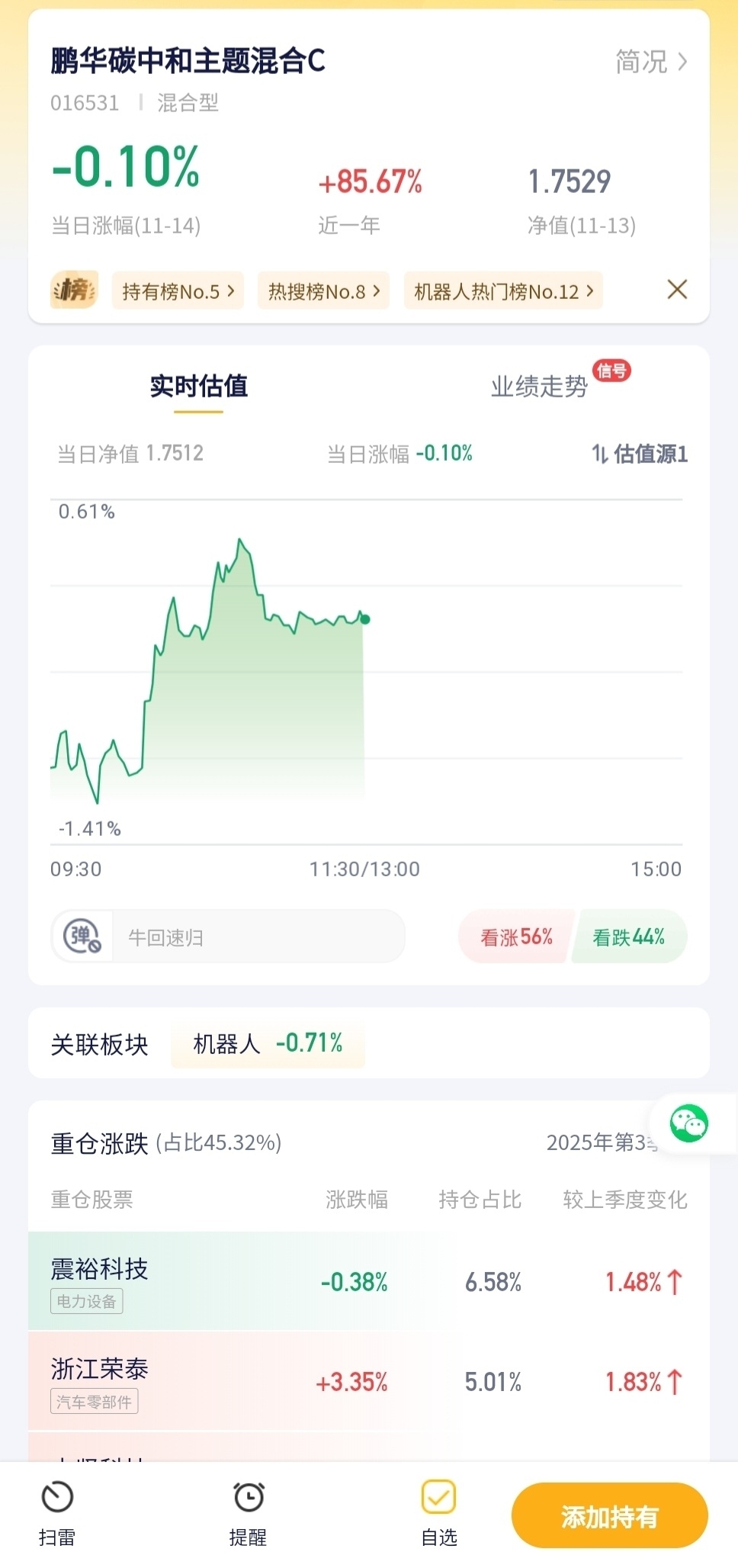 - 鹏华碳中和主题混合C今日预估跌幅-0.10%!
