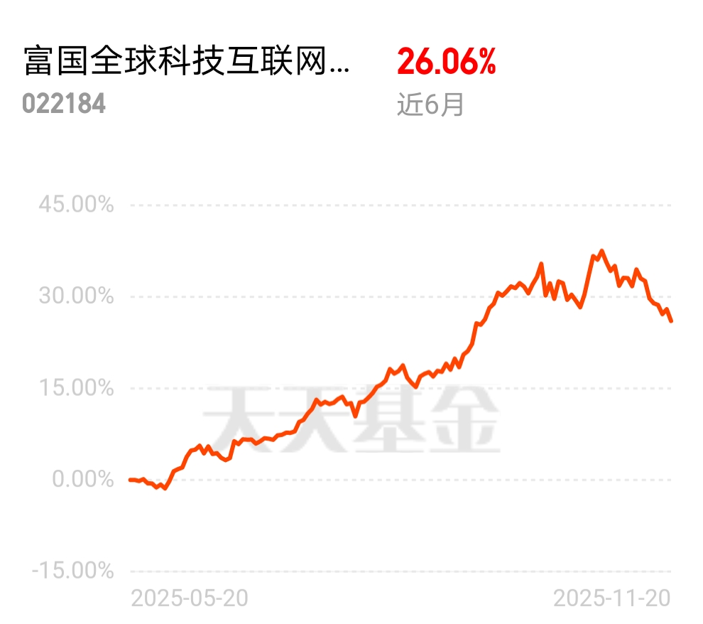 眼下调仓时把部分资金配到富国全球科技互联网C,它更偏向美股科技股,前十大重仓有英伟达、微软、谷歌、腾讯这些全球龙头,稀缺性挺明显;近3个月涨9%、半年26%、一年38%,跑赢多数同类大多数同类。现在纳指和不少竞品都限购了,它还有额度,估值比过去五年36%的时间还便宜短期波动反而是逢低布局的机会。
