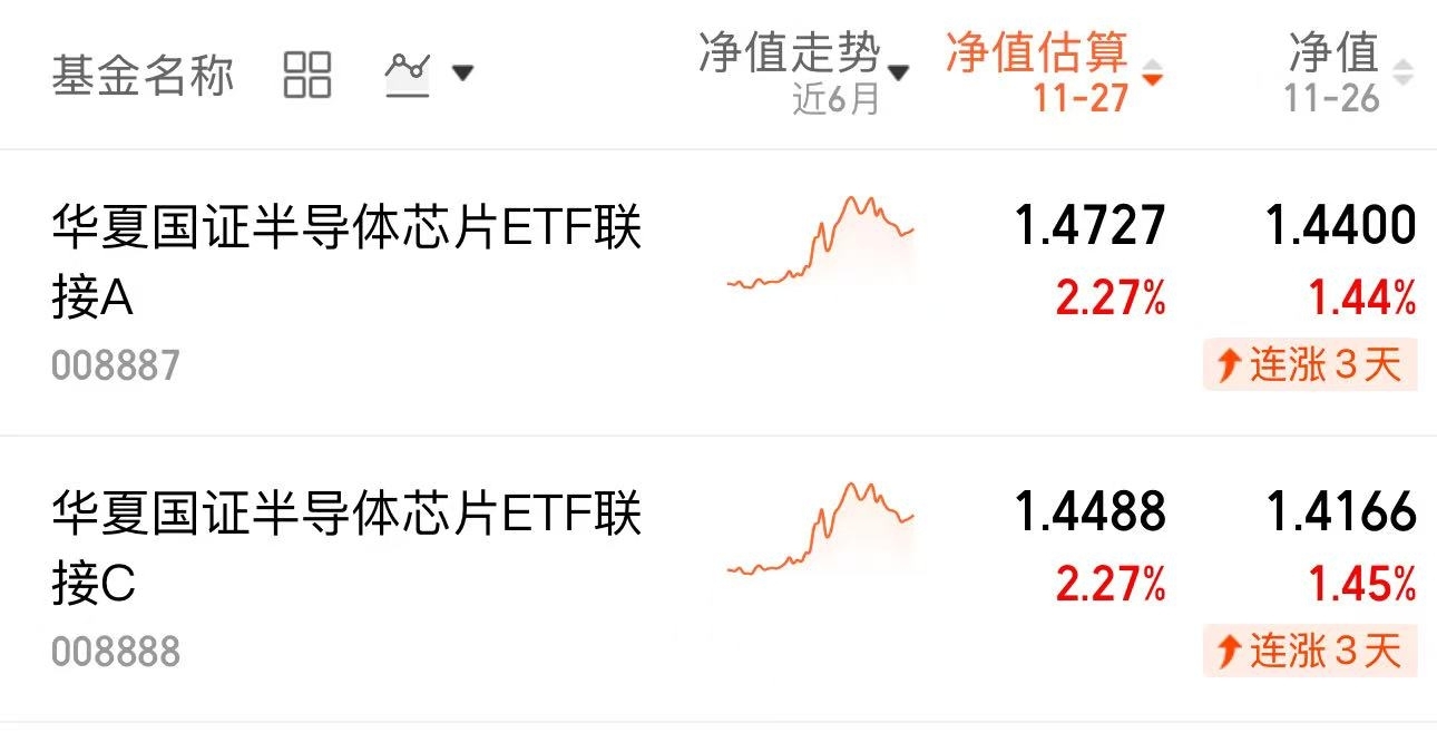 连红3天,今天继续上扬2%+,前期加仓$华夏国证半导体芯片ETF联接C$是正确的选择,叠加国产替代大背景,收益差不了