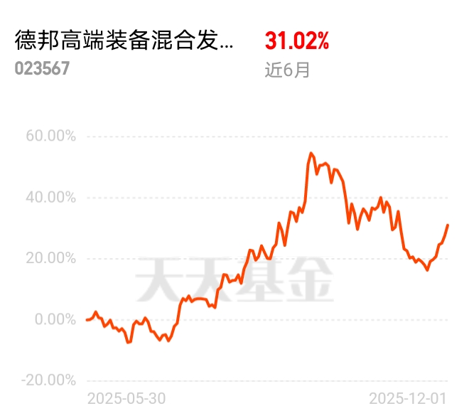 光伏 HJT 设备迭代升级,高效组件产能扩张带动设备需求,新能源产业链持续景气。德邦高端装备混合 C 近 6 个月收益 31.02%,布局 HJT 设备优质标的,借行业东风上涨,今天涨了快 3 个点,持有超省心。
