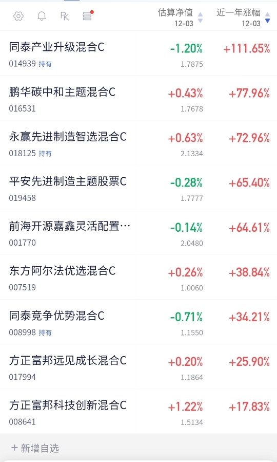 同泰竞争优势混合C(008998) 跌 -0.71%