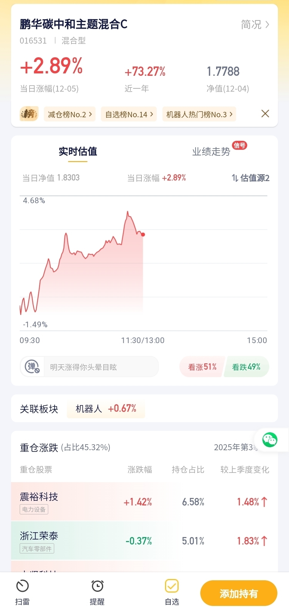 今天这基涨得挺猛,碳中和板块今天发力,资金往这扎堆,带着它直接往上冲,吃肉行情稳了~