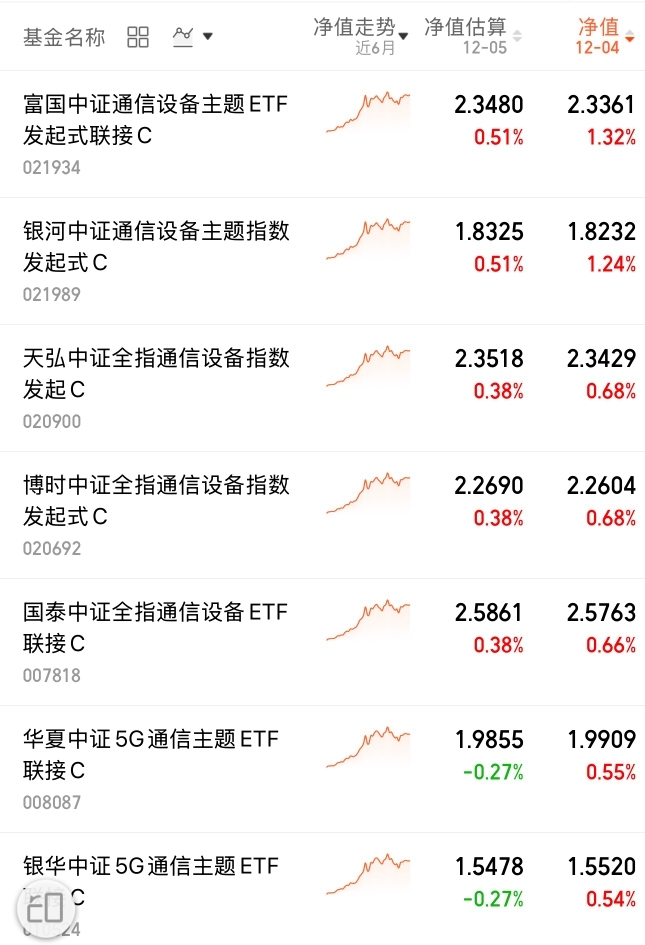 碳中和主题最近没起色,我就关注富国通信设备,近一周涨4.1%、一月6%、半年93%,业绩抢眼。昨天净值涨得最凶,指数涵盖CPO、军工通信和卫星互联网,绿色科技。估值低,利润提升,觉得作为碳中和投资的补充挺好。$富国中证通信设备主题ETF发起式联接C$