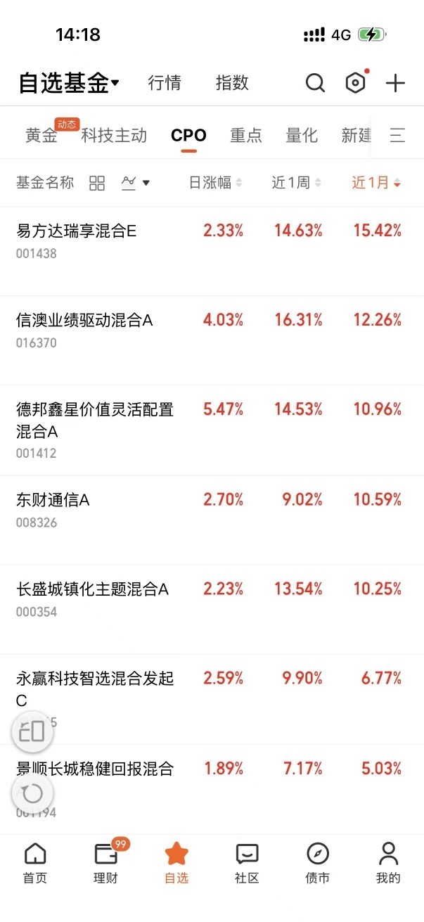 这支$易方达瑞享混合E$ 也是持仓CPO板块龙头,昨天涨2.33%,近1周收益14.63%了,算是大幅跑赢其他板块了,虹吸了大多数资金,这赚钱效应也算是比较集中啦!