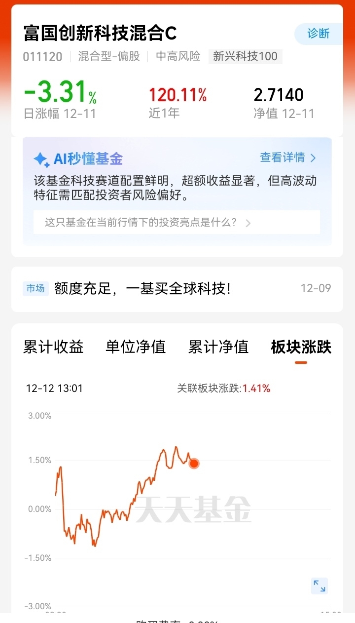 富国创新科技估值涨1.41%,$鹏华碳中和主题混合C$0.32%,科技产业升级趋