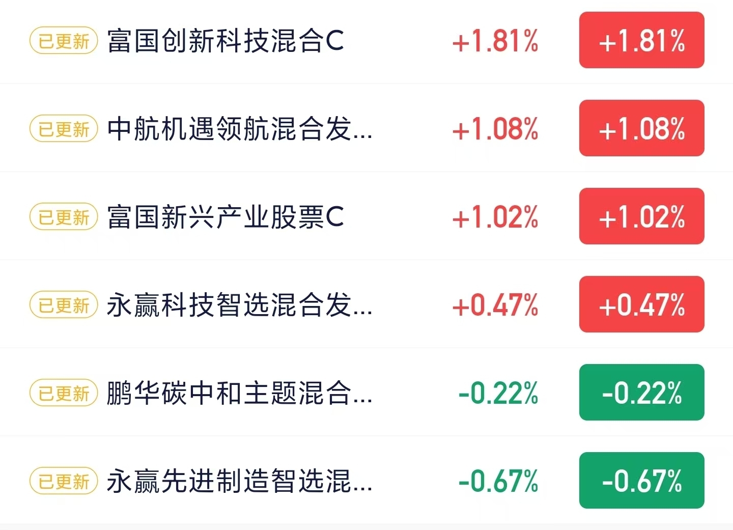 市场反弹的信号一出来,科技板块就跟着发力,鹏华碳中和主题混合C今天小跌0.22%我持有的富国创新科技也趁势涨了1.81%,这下总算缓了口气。