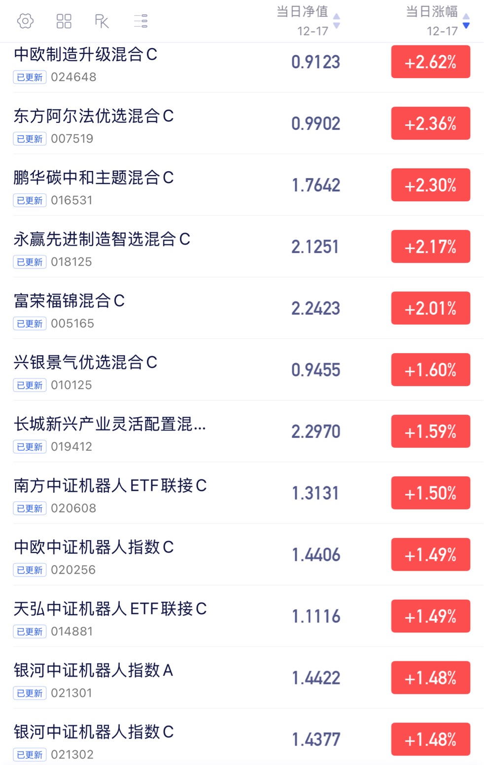 机器人看过来:今日中欧制造升级混合c今日大涨2.62%!