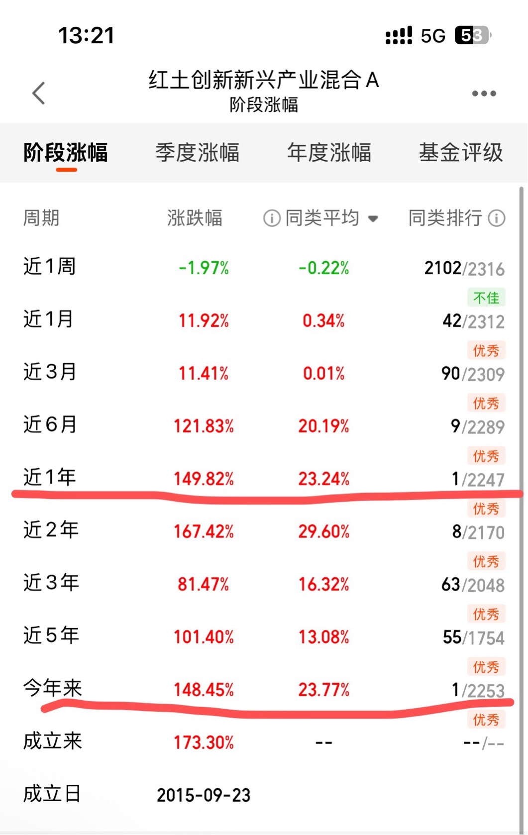$红土创新新兴产业混合C$ 去年这时候开始定投红土创新新兴产业A类,中间经历几次大跌,但都坚持下来了。现在回头看,近一年149%的收益,定投真的平滑了成本。今天科技调整,我不仅没停反而加了点C类,没有申购费就是爽。长期持有的话,这点波动真的不算啥。