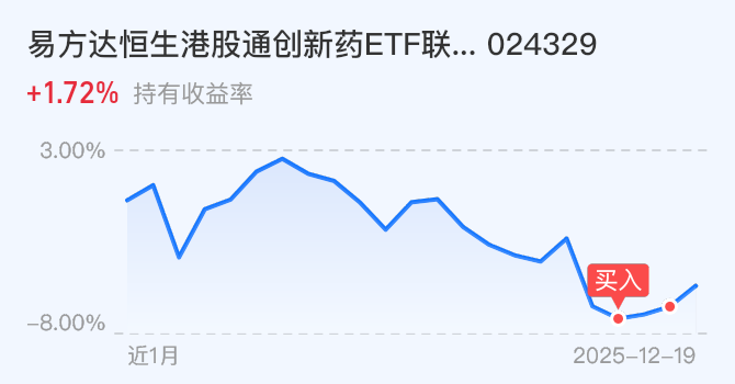 创新药:+500$易方达恒生港股通创新药ETF联接C$,经过较长时间的调整,港股创新药的估值已经回落至历史低位,现在正在“买在无人问津处”的时候,分批低吸慢慢布局。易方达恒生港股通创新药的成分股中大都是港股创新药龙头,成长性高弹性大,而且持有7天就免赎回费操作也更灵活。近期关于创新药的利好确实比较多,消息面向好,反弹也就是时间问题了,提前布局一下。