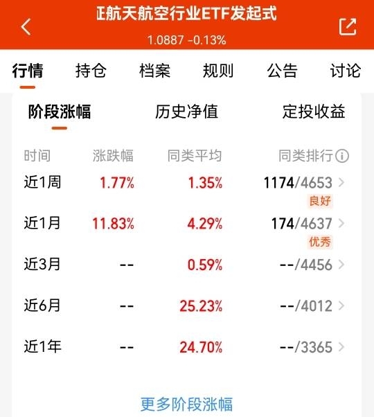 好消息!$华安国证航天航空行业ETF发起式联接C$ 近月暴涨 11.83%,唯一航天场外基涨得快,现在入手坐等享红利~