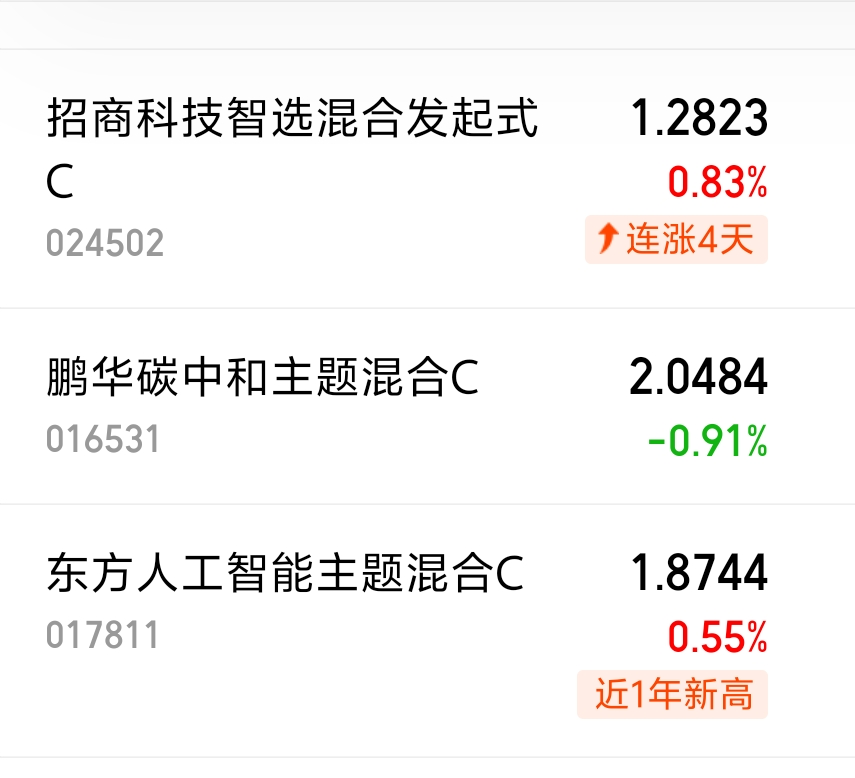 $招商科技智选混合发起式C$ 昨日涨幅0.83%