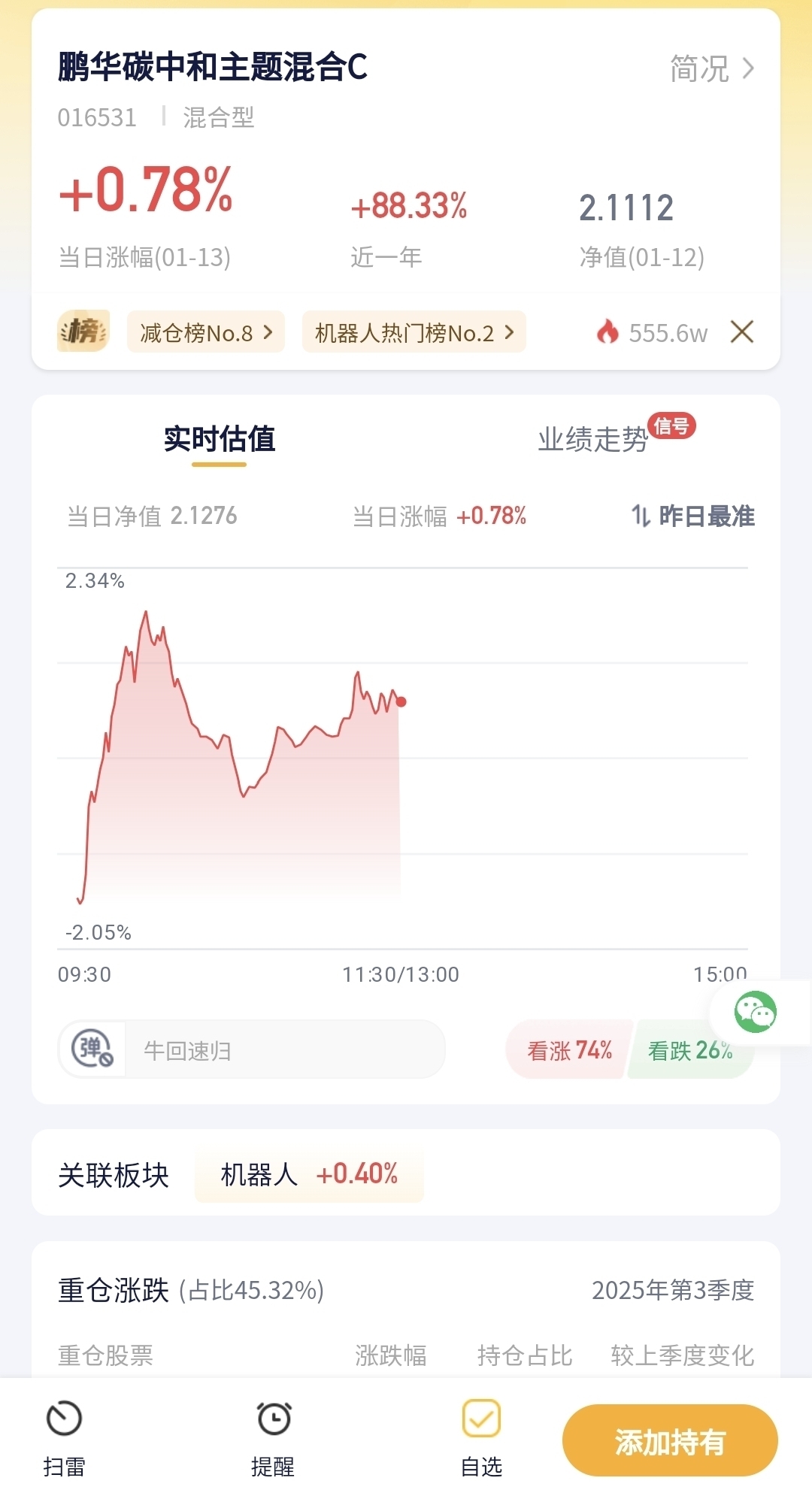 鹏华碳中和主题混合C今日预估涨幅0.78%