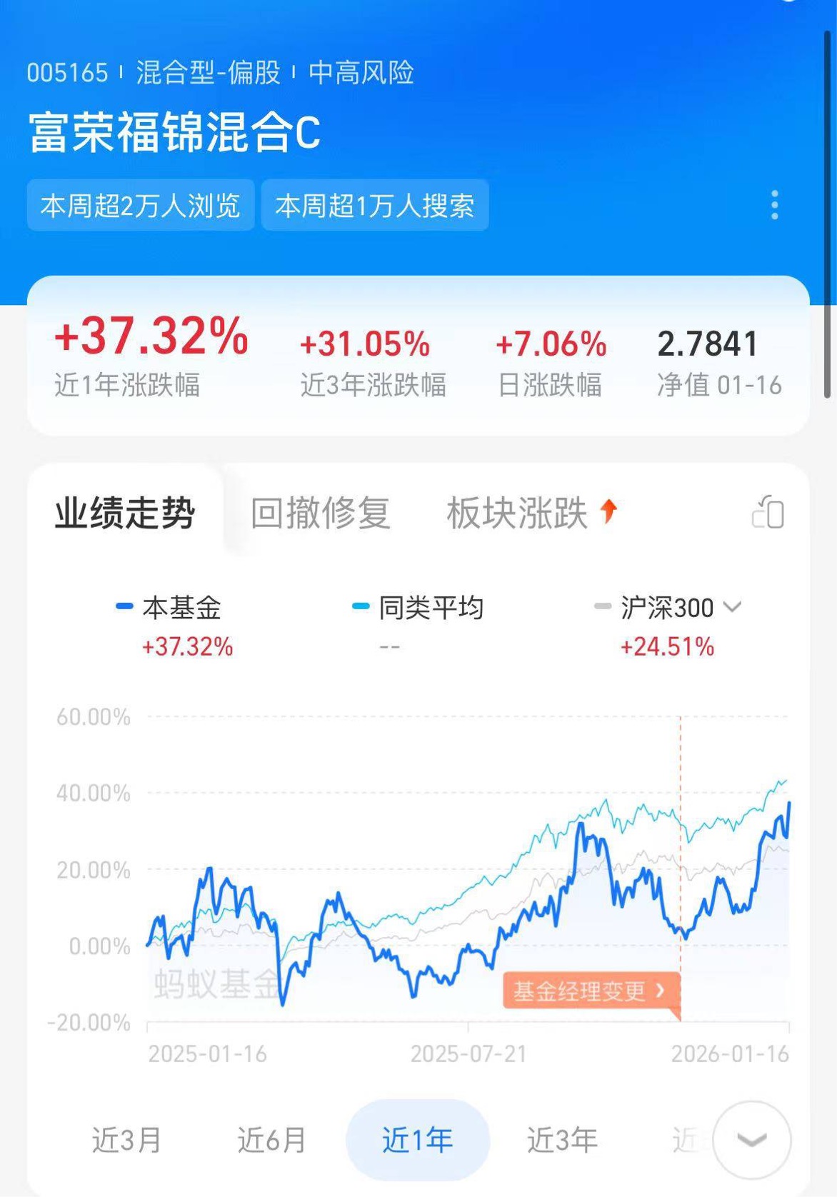 富荣福锦混合C用业绩征服投资者,今天大涨7.06%,近一年37.32%收益同类靠