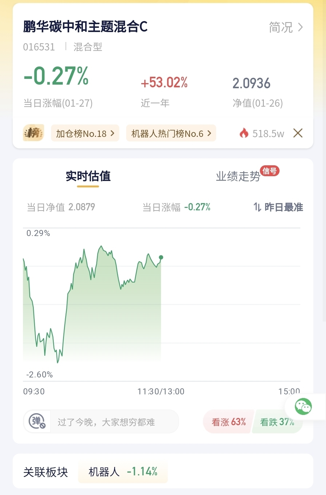 今天市场资金都跑去科技股了,碳中和板块暂时被冷落,这只基金也跟着小幅回调。