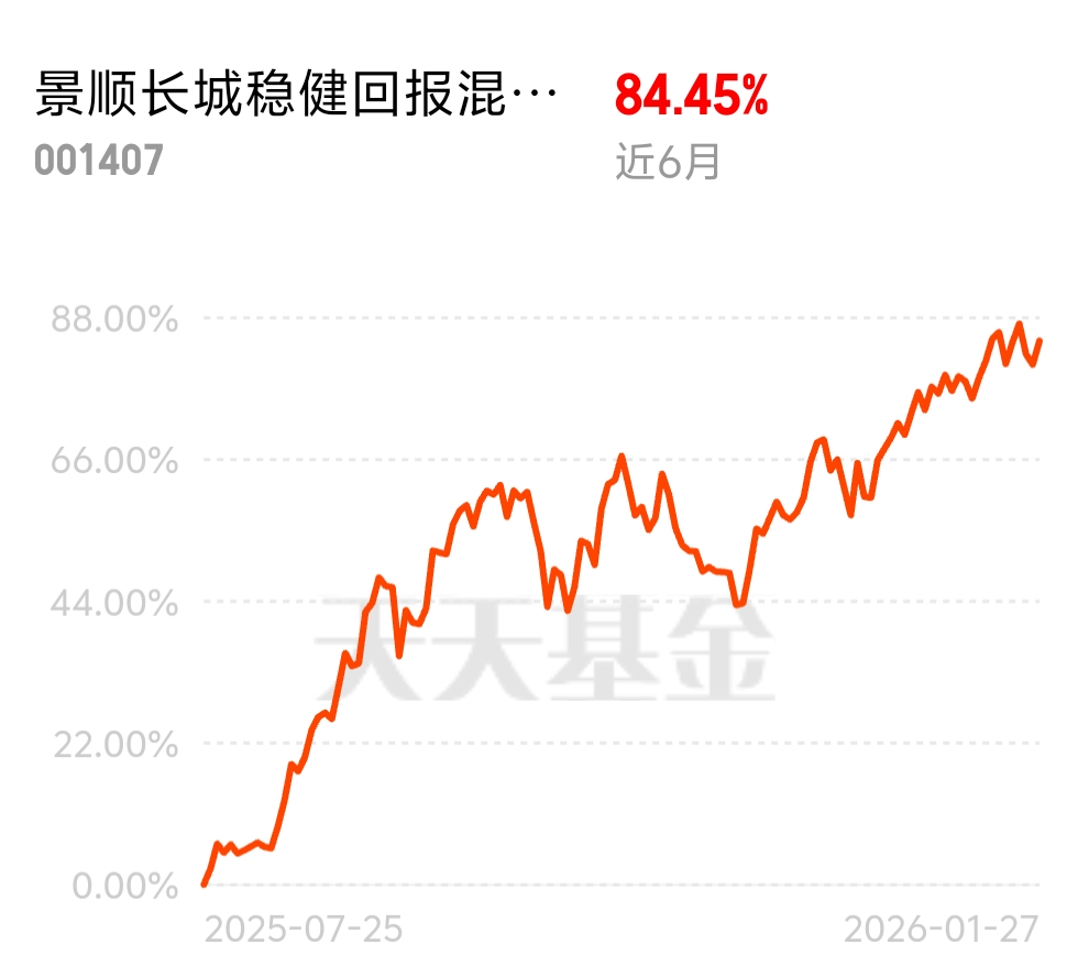 科技赛道布局正当时,景顺长城稳健回报混合 C 近 6 月 84.45% 走势超稳,经理操盘能力超在线,把业绩做的超棒,科技主线不跑偏,逢跌补,0.6% 管理费比同类 1.2% 香太多