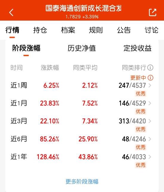 国泰海通创新成长混合C太给力了,近6月85.26%、近3月22.10%,布局的都