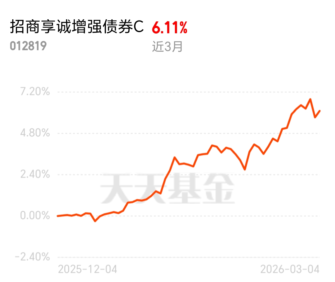 不想承担高风险,又想跑赢纯债,这只就是标准答案。招商享诚增强债券 C 昨天涨 0.36%,近一年 12.17%、回撤 1.9%,军工增强款少,当下位置合适继续布局。$招商享诚增强债券C$