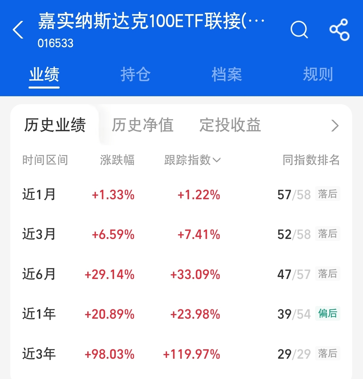 美股周五收高,三大股指均历史新高,道指史上首次收在47000点上方。最近太多纳斯达克都限额了,这支$嘉实纳斯达克100ETF发起联接(QDII)C人民币$ 每天还有5000的额度,可以放心大胆购买,今年上半年已经调整过了,下半年还有加息预期,纳指调整可能性越来越小了,错过真的就拍大腿了,我今天也加点,不要错过行情哦