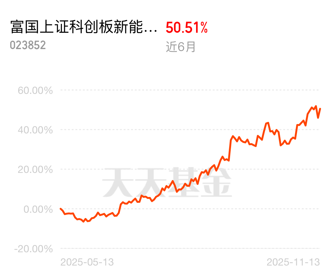 除了投海外科技,个人也配了些富国上证科创板新能源ETF联接C,盯的是光伏锂电这些硬核方向,近6个月涨了51%,跑赢多数同类大多数同类,反弹快、拿得住。