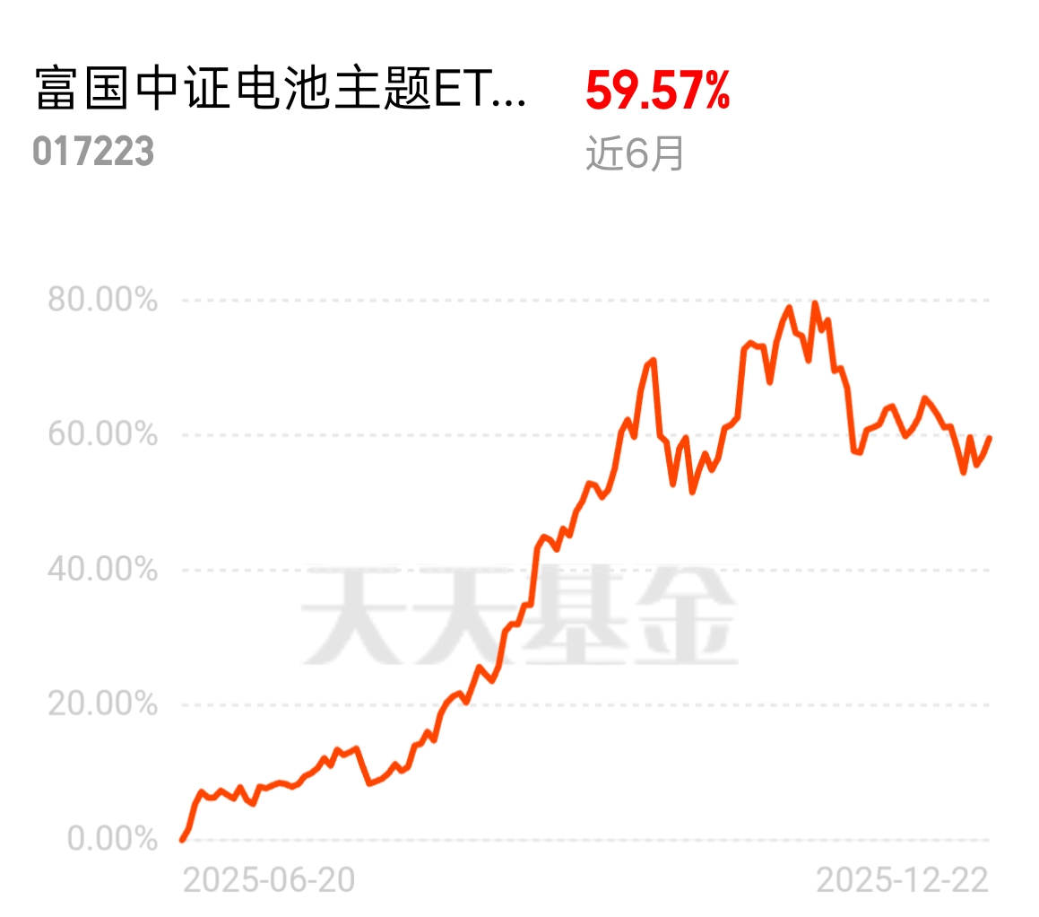 纳指100看AI算力,电池看制造落地。富国中证电池主题ETF联接C今天预估涨3%,此前已经连涨2天,近6个月收益60%,近1年48%,在本土产业链中展现独立行情。嘉实纳斯达克100ETF联接C跟踪美股科技巨头,而富国这只专注A股电池核心企业,在新能源车销量回升、储能放量背景下,嬴利修复更具确定性。$富国中证电池主题ETF发起式联接C$