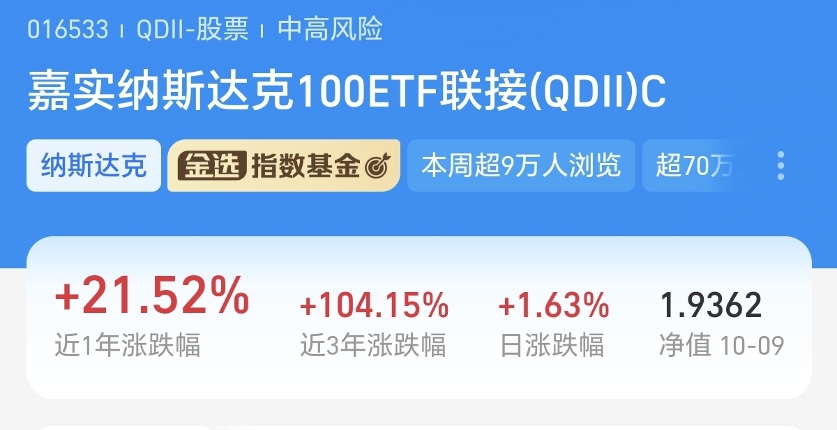 宝子们,我关注的$嘉实纳斯达克100ETF发起联接(QDII)C人民币$它紧密跟