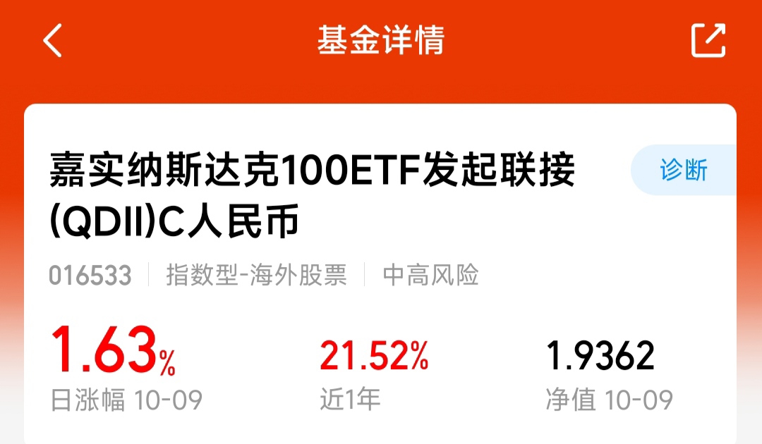 在震荡市中,资产的稳健表现尤为可贵。$嘉实纳斯达克100ETF发起联接(QDII)C人民币$ 近一年收益率达21.52%,仅上一交易日便实现1.63% 的净值增长,展现出较强的增长动能。