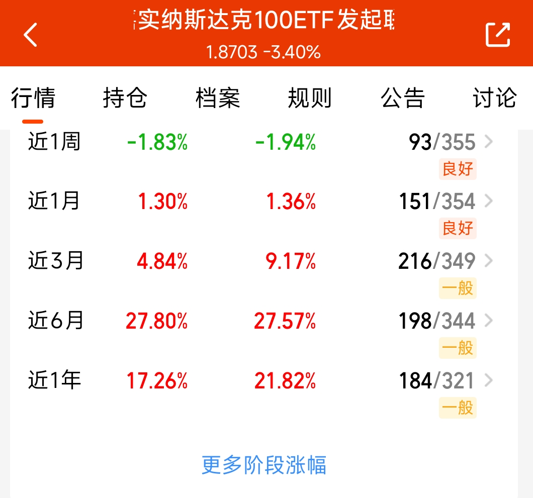 $嘉实纳斯达克100ETF发起联接(QDII)C人民币$ 这个跟踪纳斯达克100走,近一年上涨了17个点,美股纳斯达克连续上涨多年,保持还得比较稳定呢,我还是比较看好这个方向的,科技的领域下长期走有空间呢!目前最大额度还是5000呢,现在这个额度大大的开放了!