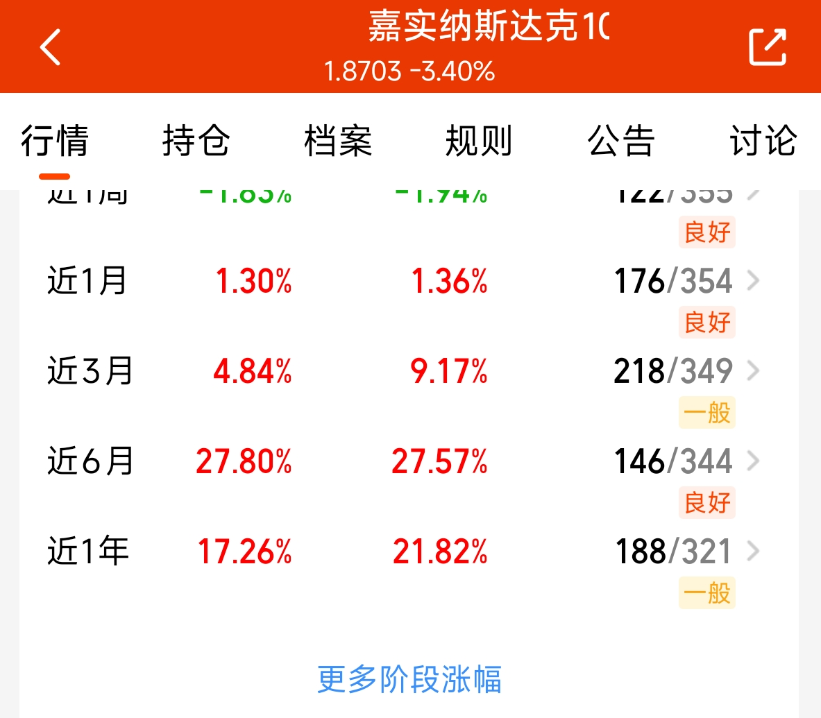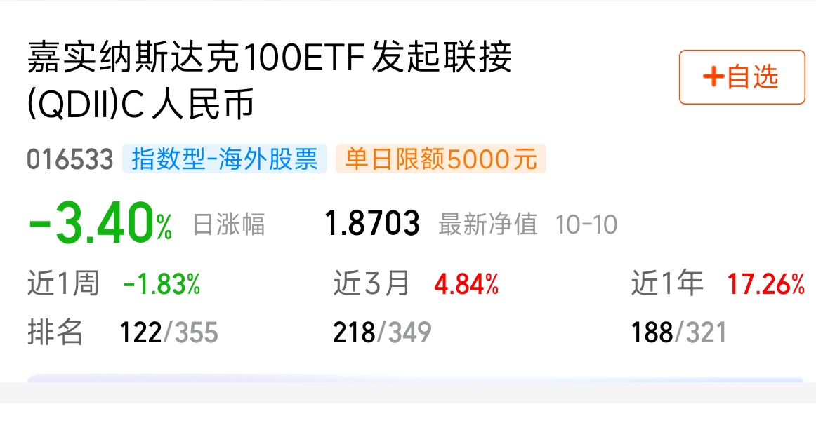 今天好转了许多了$嘉实纳斯达克100ETF发起联接(QDII)C人民币$ 这个明天可以好好的涨一涨了,近一年涨了17.26%。当前美股科技板块正迎来多轮趋势共振,算力基建领域,晶圆代工作为AI产业“地基”,台积电等成分股因供给瓶颈持续迎来价值重估,而指数中算力集群企业的研发投入占比显著高于传统科技公司,技术壁垒持续强化。科技整体还是向好的,看好这个美股吧,长期下来涨的较多!