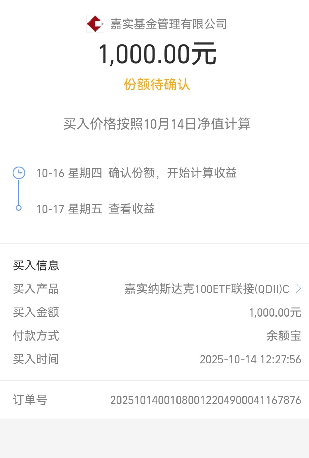 果然还是美股科技强,上周五短线回调之后,昨天又是迎来强势反弹。目前来看,美股科技在全球领先地位优势明显,而且随着美联储降息打开,美股科技也是第一个受益。所以虽然今年美股一直在创新高,但是未来在美股科技带动下,纳斯达克指数有望继续突破。今天继续加1000元$嘉实纳斯达克100ETF发起联接(QDII)C人民币(OTCFUND|016533)$这只基金单日还可以买5000元,额度还是比较高的,业绩也不错,加起来就是。