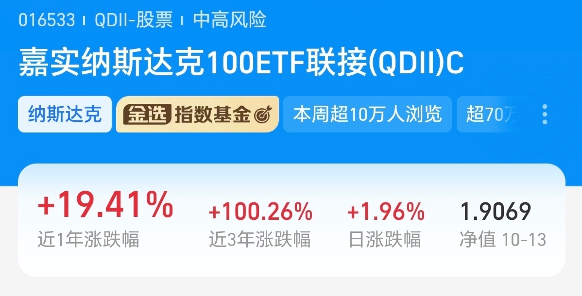 受老特最新讲话影响,美股三大指数尾盘走低,最终涨跌不一,娜娜小绿。鲍威尔隔夜释放的鸽派信号提振市场情绪,但老特关于大豆以及禁运食用油的讲话,使得尾盘娜娜跳水。 不过美股长牛,调整也是机会,$嘉实纳斯达克100ETF联接(QDI1)C$$嘉实纳斯达克100ETF发起联接(QDII)C人民币$ 最近业绩表现还是可圈可点的,昨天收1.96%,涨的比指数多,近一年快20个点,也不错,近3年翻倍,业绩也是非常棒的,同类排名靠前。美股震荡上涨的趋势,继续看好了。