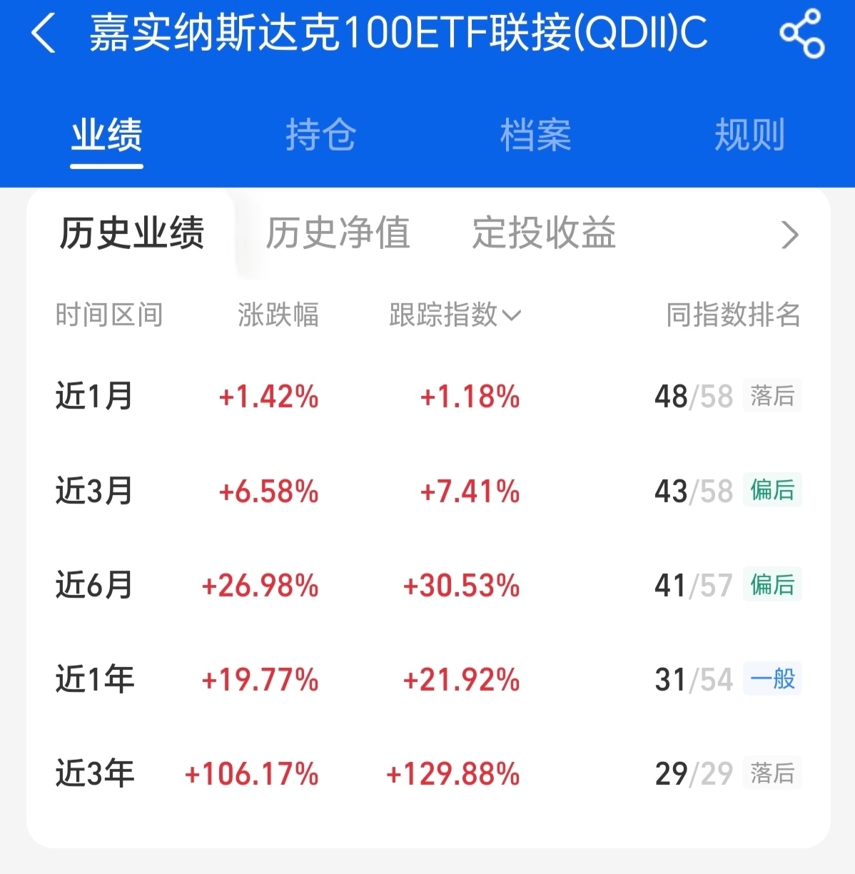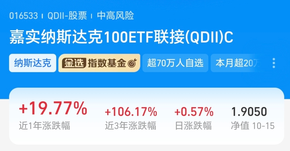 美联储降息预期增强,科技股爆发,费城半导体指数开盘涨超1%。谷歌盘初一度涨超2%, 创历史新高。最近娜娜还是蛮强的,$嘉实纳斯达克100ETF联接(QDII)C$$嘉实纳斯达克100ETF发起联接(QDII)C人民币$ 最近不错哦,更新涨0.57%,近6月26.98%,近一年19.7 7%,业绩同类排名靠前,降息即将到来,娜娜还会继续拉升的,期待哦