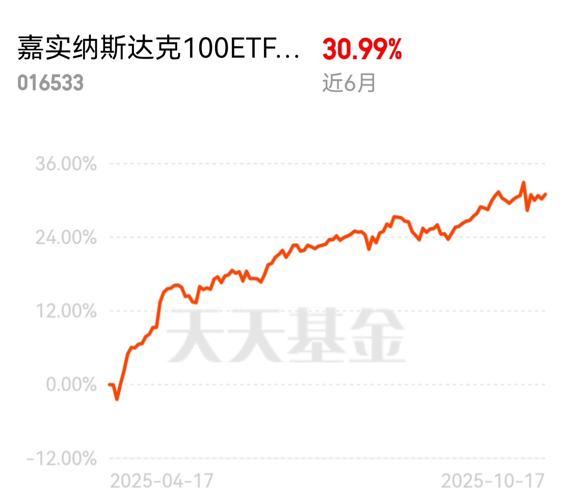 涨到你怀疑人生,这就是美股纳斯达克。特别是 $嘉实纳斯达克100ETF发起联接(QDII)C人民币$ 这只基金,业绩特别强。今天更新又涨了0.56%,近一年大涨19.18%,近三年大涨100.30%,表现也太给力啦!涵盖了美股众多优质科技企业,在板块里的代表性相当强。熟悉市场的朋友都知道,每次美股经历了一波调整,就很快能修复,每次都能创新高,足以说明弹性成长这块的独特优势,现在额度每日还有5000元,一定要定投买起来。