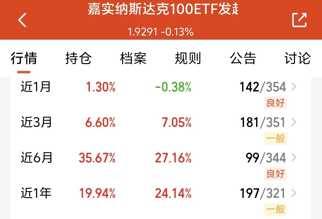 $嘉实纳斯达克100ETF发起联接(QDII)C人民币$ 紧密跟踪纳斯达克100指数,网罗苹果、英伟达等全球科技龙头,这些成分股2024Q3平均净利润增速达22%,盈利支撑扎实 。该基金近6个月涨幅超35%,长期收益亮眼,且近1个月波动仅1.30%,在震荡中展现出强韧性。